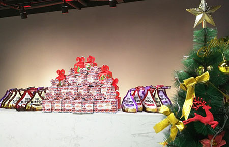 隨后,聯(lián)測搖身一變,成為圣誕老人,為大家一一送上了精美的圣誕禮物,當(dāng)大家收到平安果與滿滿一整袋巧克力時,開心的像個孩子。