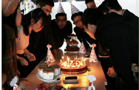 十幾位壽星歡聚在公司總部報(bào)告廳,大家圍繞在甜甜的蛋糕邊上,一起吹蠟燭,許心愿,每個壽星的臉上洋溢著幸福的味道。